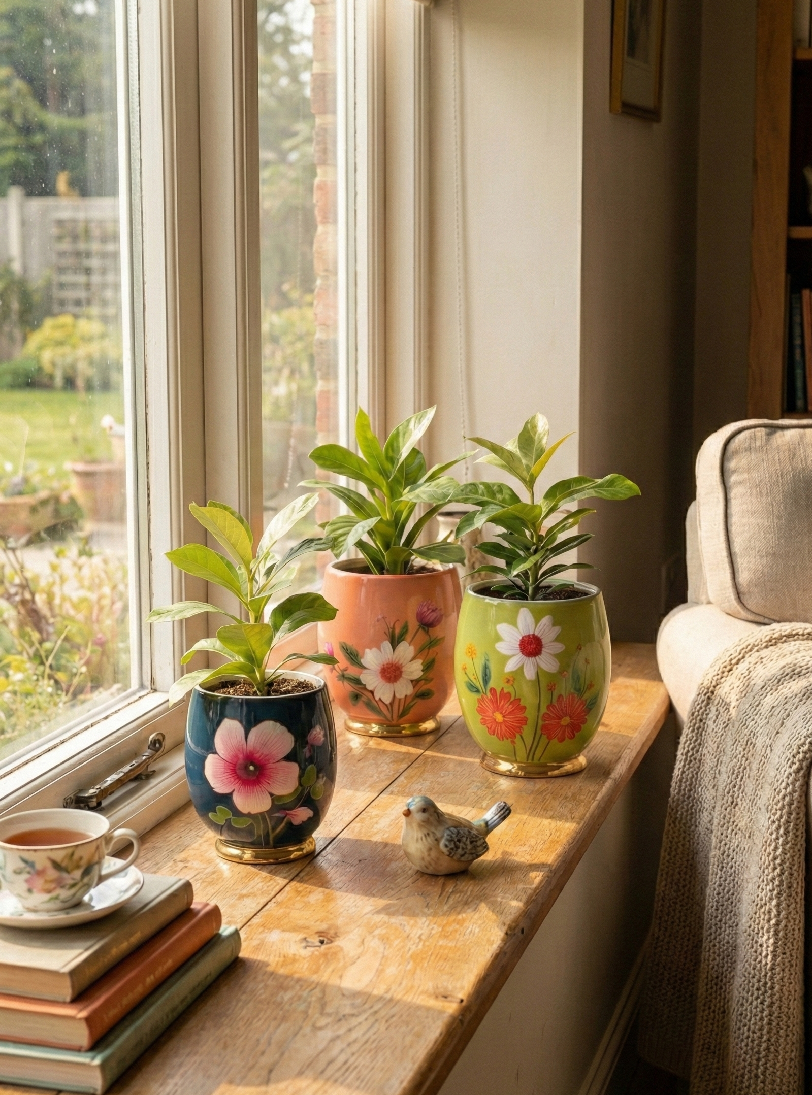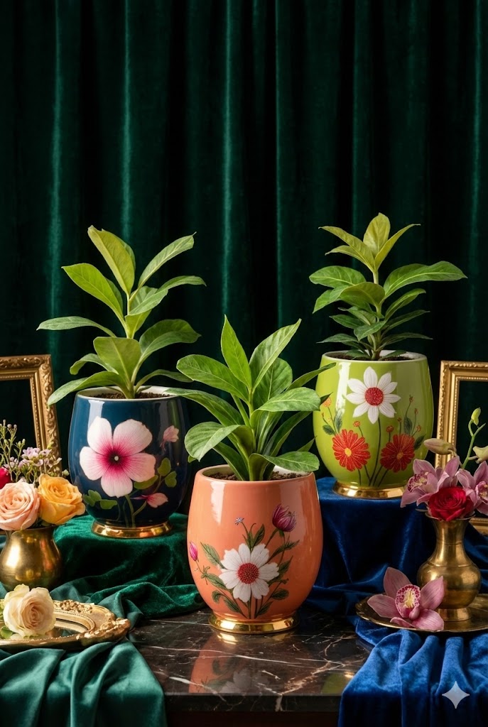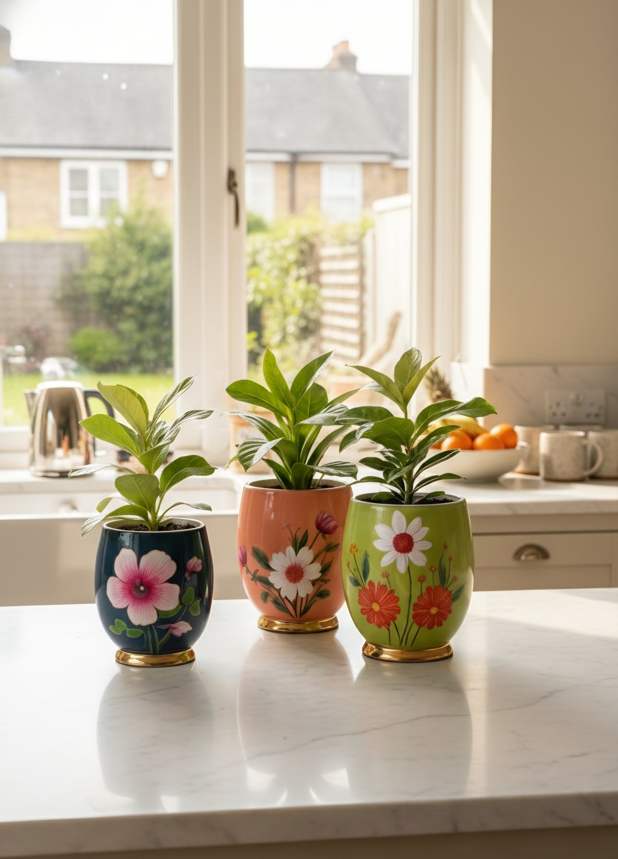 With vintage-style hand-painted patterns and a gentle glossy finish, these planters feel like sunshine on a slow morning. Light, cheerful, and easy to fall in love with.